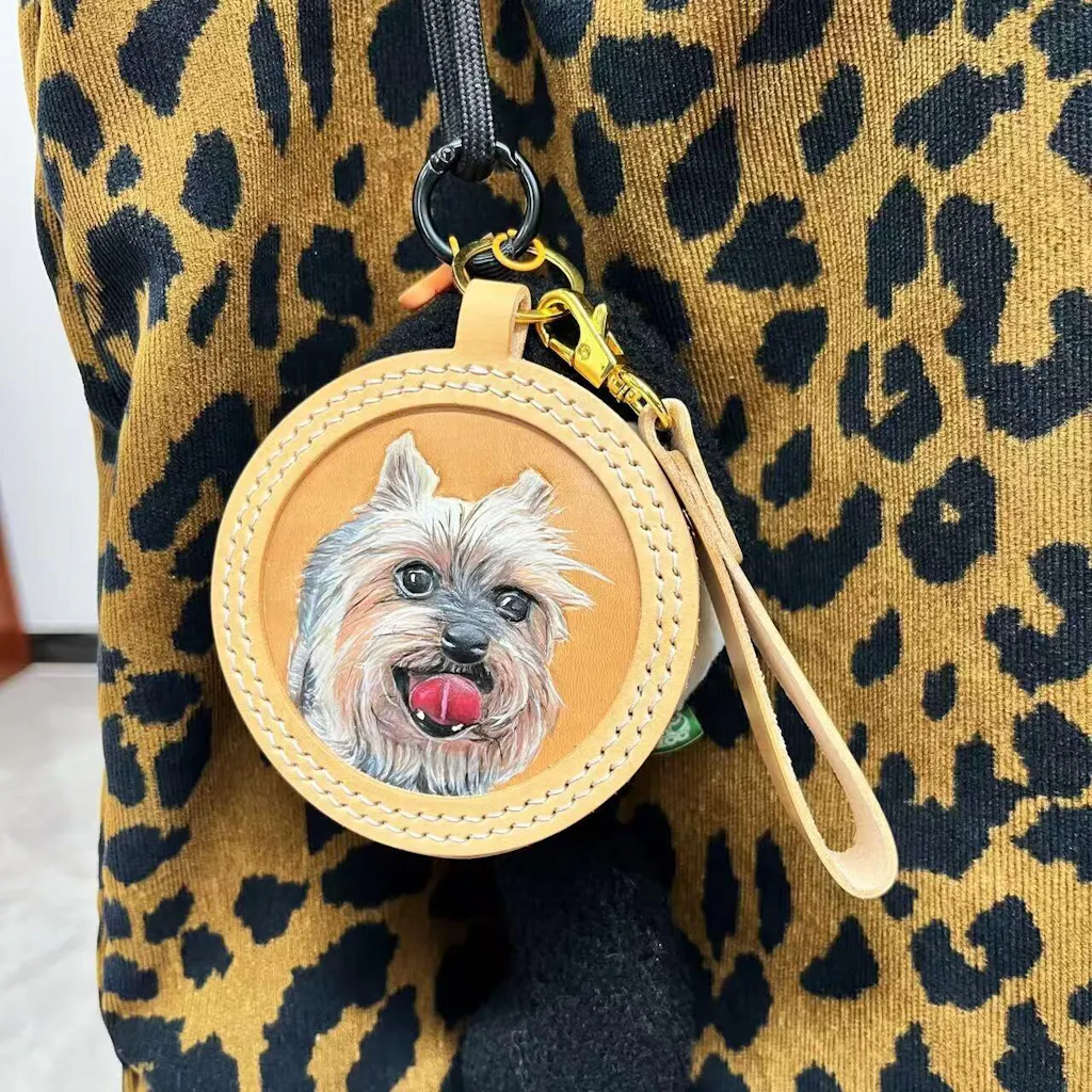 Memorpaw Custom Hand Painted Leather Pet Portrait Keychain